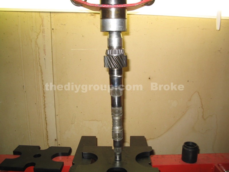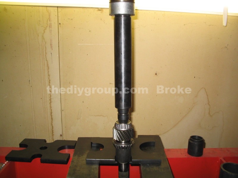 Install the output shaft large taper bearing as shown. Heat the bearing to 212F and press it on until it stops...