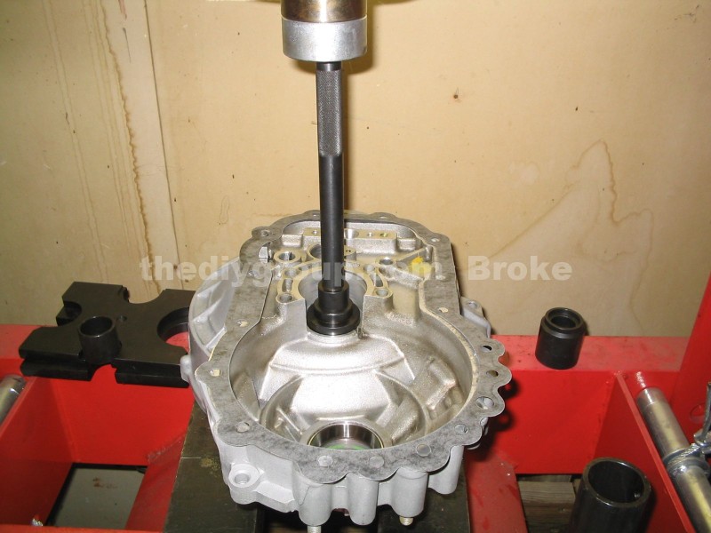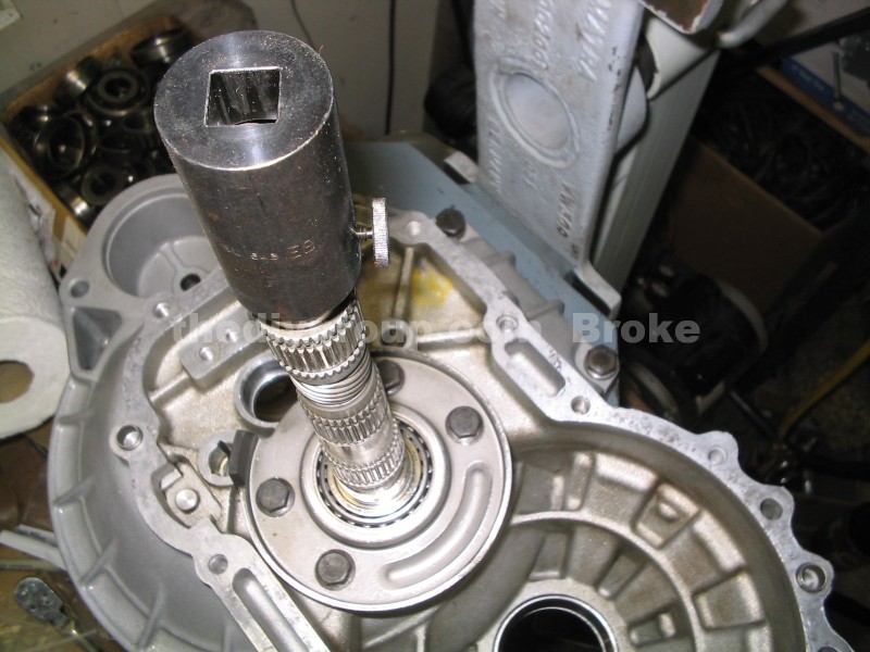 Use an internal extractor to yank the output shaft small bearing race back out of the gearbox....
