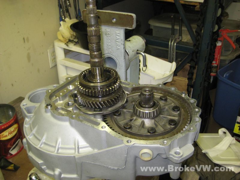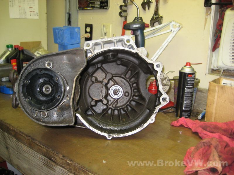 I'm done messing with it for a little while, I just wanted to open the transfer case and see inside of it... I actually have a MK3 2.0L trans on the bench, but I scooted some of the parts to the side to allow me to open the transfer case.